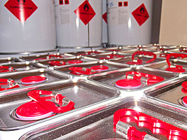 Lakier i utwardzacz są dostępne w metalowych kanistrach o pojemności 5 i 10 litrów.